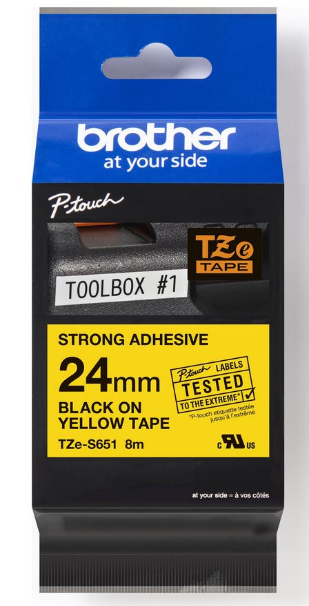 Nastro etichette adesive per Brother Tze-S651 adesività standard nero su giallo 24mm